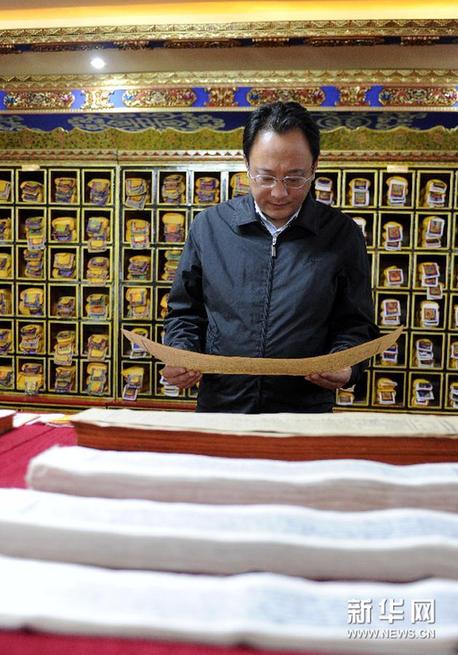 ཉི་མ་བཀྲ་ཤིས་ལགས་དང་ཚན་རྩལ་ལས་གཉེར་བ་རྣམས་ཀྱིས་བོད་ཡིག་ཆ་འཕྲིན་ལག་རྩལ་གྱི་ཞིབ་འཇུག་བྱེད་བཞིན་པ།