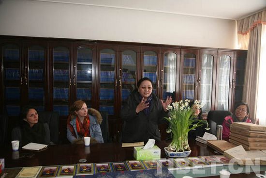ཕྱི་འགྲིམ་སློབ་མ་རྣམས་ཀྱིས་བོད་ཀྱི་རིག་གནས་སྐོར་གྱི་གསལ་འགྲེལ་ལ་ཉན་བཞིན་པ།